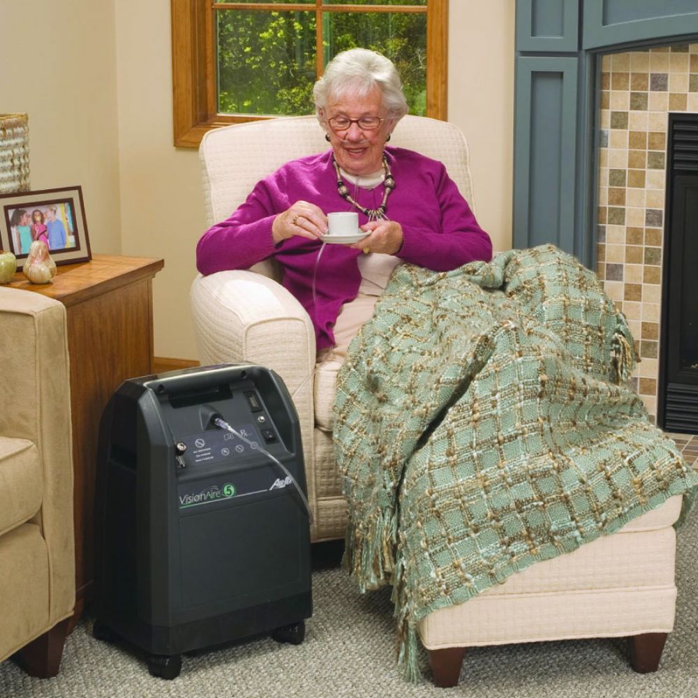 5 Litre akım üreten oksijen konsantratörleri arasında Caire VisionAire5 oksijen konsantratörü, 15 metre kanül kullanılabilirliği ile tek markadır. Ev içinde size özgürlük sağlar.