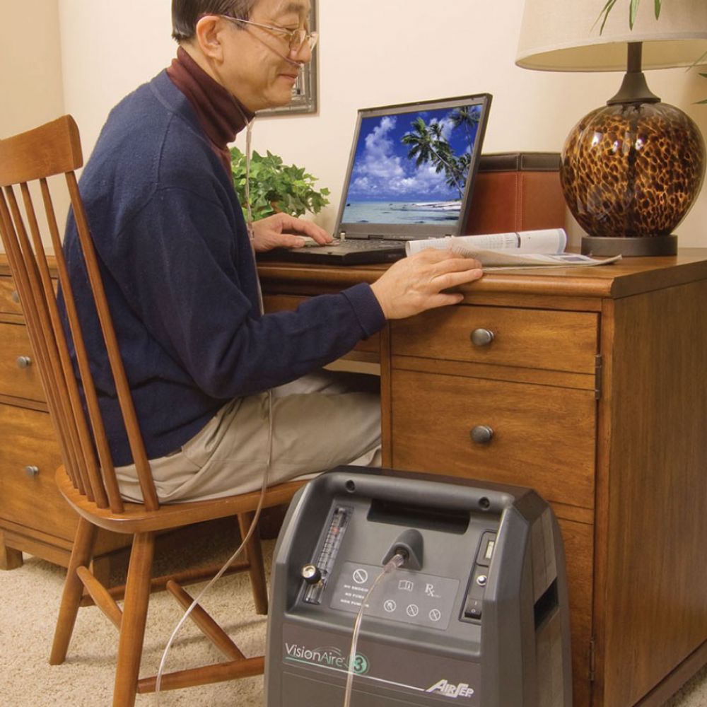 5 Litre akım üreten oksijen konsantratörleri arasında Caire VisionAire5 oksijen konsantratörü, 15 metre kanül kullanılabilirliği ile tek markadır. Ev içinde size özgürlük sağlar.